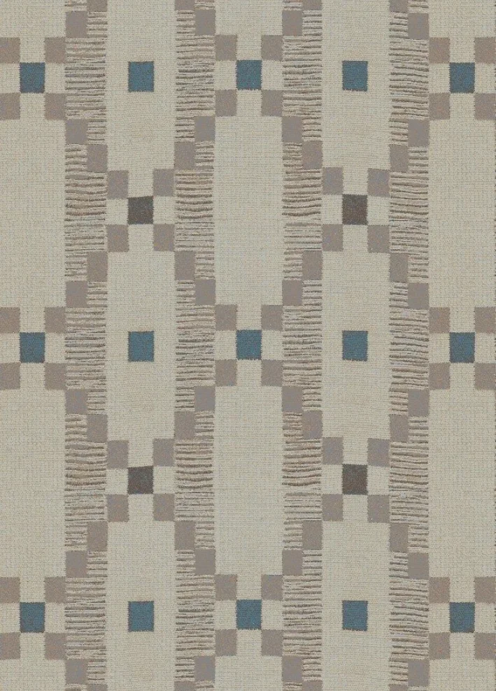 Mẫu RV2870-Q9-RV2 nổi bật với họa tiết hình học đối xứng được tạo thành từ các khối vuông nhỏ và các đường vân dệt đan xen. Hoa văn được sắp xếp theo trục dọc, tạo nên sự cân đối và nhịp điệu cho bề mặt thảm, giúp không gian trở nên gọn gàng và có chiều sâu hơn.
