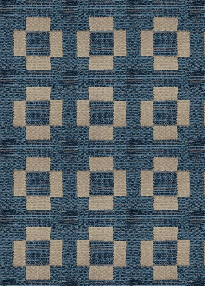 Mẫu RV2871-Q9-RV2 gây ấn tượng với các họa tiết hình khối đối xứng được lặp lại theo bố cục dạng lưới. Mỗi họa tiết được tạo thành từ các khối vuông màu sáng đặt trên nền xanh lam đậm, tạo nên sự tương phản nhẹ nhàng nhưng đầy cuốn hút.