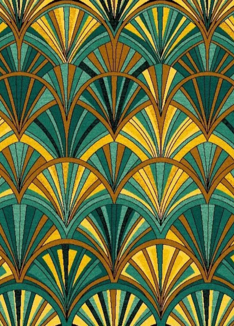 Thảm RV3183-Q9-RV2 thuộc dòng thảm trang trí mang phong cách Art Deco, lấy cảm hứng từ hình tượng quạt mở và những vòm kiến trúc đặc trưng châu Âu thập niên 1920. Họa tiết quạt mở rộng tượng trưng cho sự lan tỏa, khởi đầu mới, thịnh vượng và may mắn, được phối theo dạng lớp tầng tạo nên hiệu ứng thị giác mạnh mẽ và cuốn hút.